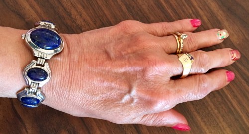 I have always loved this Blue Lapis watch but hadn't worn it much in awhile till just recently. It is a unique piece. It has a twisting face that hides the watch face.