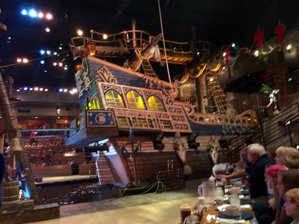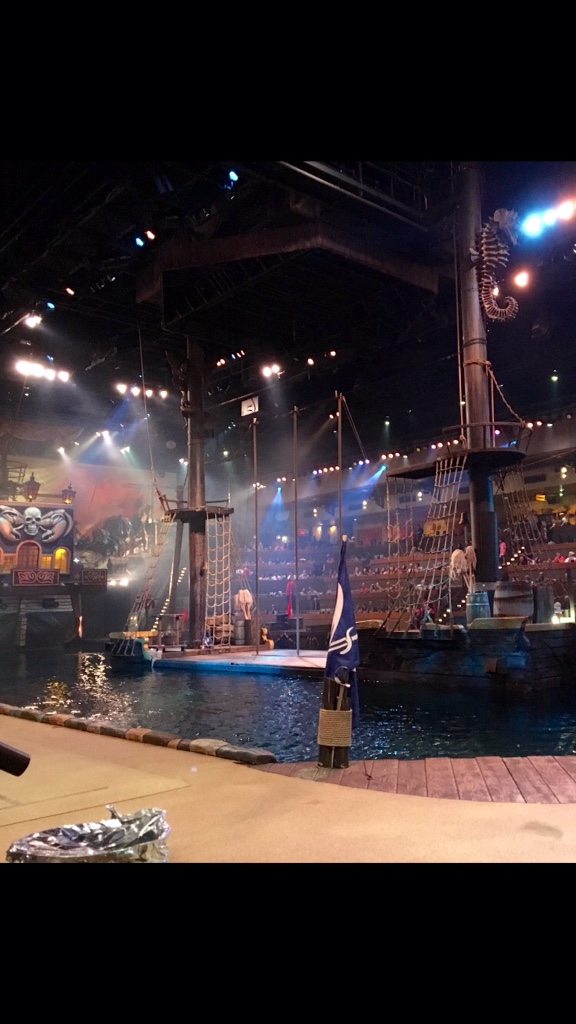 Here is part of the set to the right of the first one. You can see the first row where people are sitting. We were further to the left kind of in between the two parts of the ship. The food was great and the show was amazing.