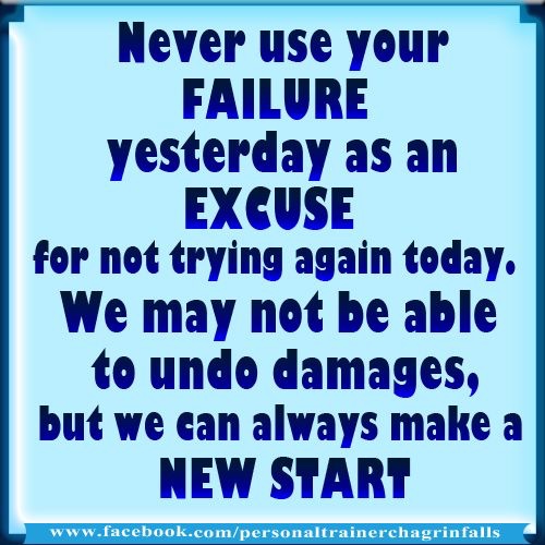So in this journey we sometimes have failures. But failures don't have to define us. In fact they can make us stronger, make us more determined. I've had many challenges in this past year and have tried to meet each and every one with courage and as a way to try and encourage and inspire others. But I have had some failures: the biggest being that I let my weight go in the wrong direction and this past week I arrived at a point where I have felt disgusted with myself and don't like the way that makes me feel or look. Sometimes you just have to reach that point and I have finally reached it. Does that make me a failure? No that makes me human! It's what I do now that matters! And it's what you do when you have failures that matter. I can't change the past . What's done is done. The above graphic put's it perfectly. Whatever failures you may have experienced, don't use them as an excuse to not try again, to not start over. No matter how many times you or I fail or falter, you and I can always start anew. That is just what I have decided to do. I'm tired of going in the wrong direction. I'm tired of being disgusted with myself. To that effect I have started to watch my diet more closely and to cut down on how much and what I eat when possible. I know there will be days I won't be perfect. Are any of us? It only matters that you make a start. I have already lost 4 pounds in less than a week. I intend to lose at least 10 more. It might not happen overnight , but I am headed in the right direction. And you can be too!